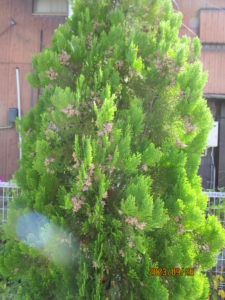 病院の入り口にある老爺柿(ロウヤガキ)の実 中国原産