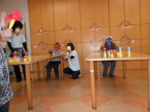 デイケアでは職員が鬼に扮して豆まき。。。